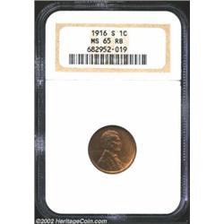 1916-S 1C MS65 Red and Brown NGC. Sharply defined the mostly red surfaces show a moderate overlay of