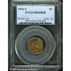 <B>1916-S 1C MS65 Red and Brown PCGS.</B></I> Fully struck and seemingly pristine, with attractive reddish-brown coloration and a few faint toning streaks. There is no detracting carbon. Population data from the third party grading services has shown the '16-S to be one of the most difficult of all Lincoln cent issues in Gem condition, and, with the Red and Brown color designation, none have been graded any higher, by PCGS. Population: 23 in 65, 0 finer (1/05). Lot:5437