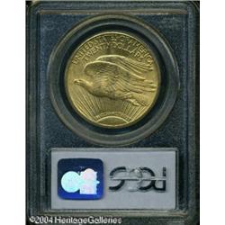 1916-S $20 MS64 PCGS. A lustrous and beautiful apr <B>1916-S $20 MS64 PCGS.</B></I> A lustrous and beautiful apricot-gold near-Gem. A few trivial imperfections do not refute the eye appeal. The final Saint-Gaudens issue until 1920. Gold coins were produced primarily for foreign trade, which was made hazardous by the World War. <BR><BR><B>Important notice:</B> Heritage usually auctions material at the rate of 200-250 lots per hour. On some occasions eBay Live bid software or the Internet may not be able to keep up with the pace of the auction. We recommend placing a realistic absentee bid now as insurance to avoid disappointment. Occasionally the auctioneer may eliminate or reject an eBay Live bid, and the auctioneer may also reopen a lot after the close of the eBay live bidding (usually because we missed an audience bid), and may reject your bid even if it shows you as the winning bidder. By bidding via eBay Live, you agree that Heritage may award the lot to another bidder at its sole discretion under the circumstances described above or any other reasonable circumstances. Since eBay bids are not shown to us until we open the lot on the floor, we treat those bids just like floor bids. In most cases the floor responds before the eBay bid is presented to us, due to Internet lag time, so for consistency we have made it a policy that floor bids are always considered first over tie eBay live bids. Also please note that all Heritage lots purchased through eBay Live carry a 20% Buyer's Premium. Please make sure you read the Terms and Conditions before you bid. This lot is being auctioned in conjunction with a live floor auction by Heritage Galleries & Auctioneers. All final auction and invoice information will be supplied by Heritage Galleries & Auctioneers, and all other information should be considered preliminary. Lot:7170