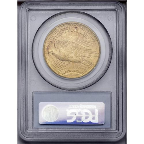 <B>1916-S<$20> MS64 PCGS.</B></I> The soft, frosted mint luster is interrupted by the usual accompaniment of small abrasions. Deeper accents of russet coloration is present on the reverse.