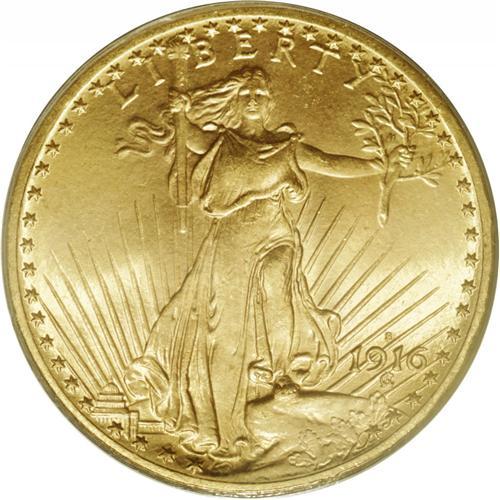 <B>1916-S<$20> MS65 PCGS.</B></I> Another in this auction's run of Gem double eagles, the 1916-S is one of the more frequently encountered in MS65 condition, and it is usually well struck and attractive. The present piece offers blazing copper-gold highlights with tinges of hazel near the rims, minimally abraded surfaces, and a bold strike. This extremely eye-appealing coin would make a superb choice for a Gem type set.