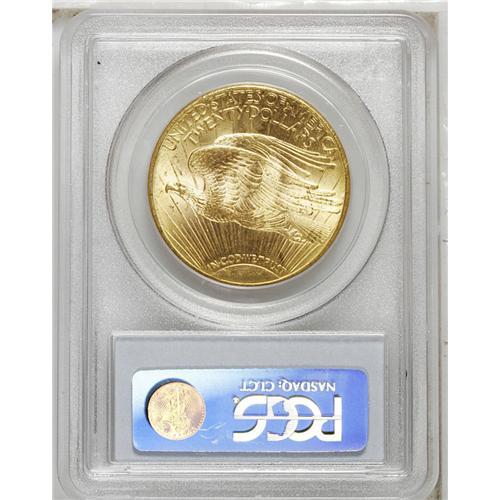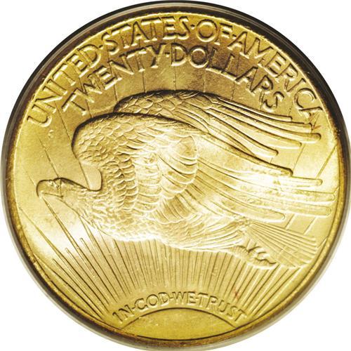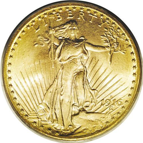 <B>1916-S<$20> MS65 PCGS.</B></I> The exemplary surfaces are immediately suggestive of an even finer grade. Beautiful luster emanates from each side of this coin, from an issue that is frequently lackluster. The strike is bold. Although perusal with a loupe reveals some marks consistent with the grade, they are completely undistracting and the impression remains that the piece is high-end.
