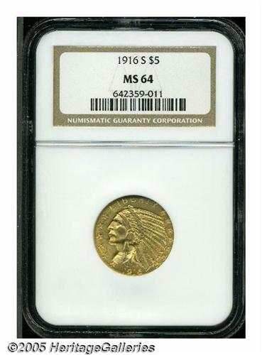 1916-S $5 MS64 NGC. Even though 240,000 1916-S Ha
