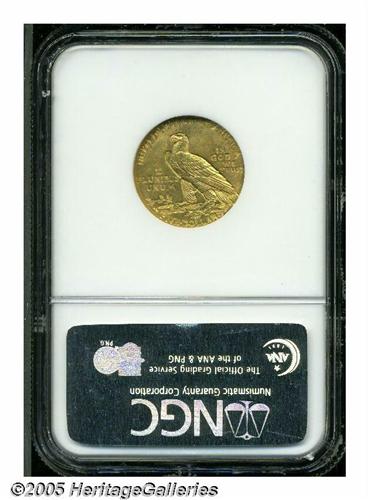 <B>1916-S<$5> MS64 NGC.</B></I> Even though 240,000 1916-S Half Eagles were struck, survivors are generally no finer than MS63. This is an exceptionally pleasing example that has rich copper-golden color over bright, satiny mint luster. Well struck with no obvious or distracting abrasions on either side. Population: 45 in 64, 7 finer (4/05).