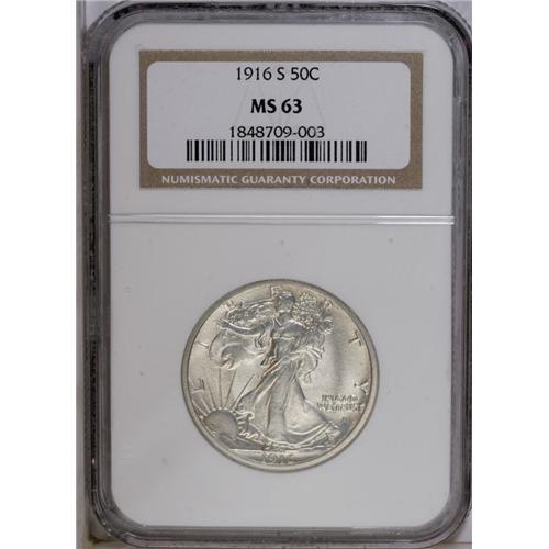 1916-S 50C MS63 NGC. This satiny, well produced key-da