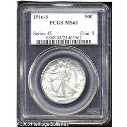 1916-S 50C MS63 PCGS. Bright, matte-like surfaces