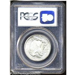 <B>1916-S 50C MS63 PCGS.</B></I> Bright, matte-like surfaces are toned a silvery-gray, and are seemingly free of mentionable marks. The design elements are well struck throughout. Lot:7922