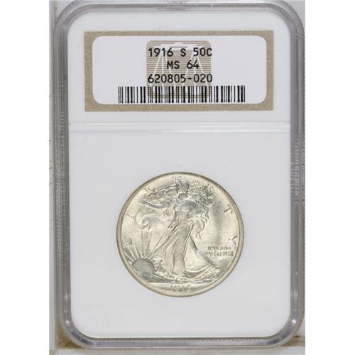 1916-S 50C MS64 NGC. The 1916-S has one of the lowest