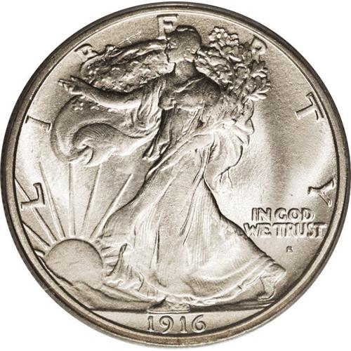 <B>1916-S<50C> MS64 PCGS.</B></I> Satiny and generally untoned with pleasing matte-like surfaces that reveal a few grade-limiting abrasions. The central striking details are typically somewhat soft on both sides. Popular as a first-year Walking Liberty issue and as a two-year variety with the mintmark on the obverse.<BR><I>From The Big Tex Registry Set of Walking Liberty Halves.</B></I>