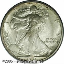 <B>1916-S 50C MS64 PCGS.</B></I> The well impressed features are lightly toned in pastel, reddish-gold shades. Typically smooth for the grade, and a conditionally scarce representative of this first-year Walking Liberty Half from the San Francisco Mint. One of only 508,000 pieces produced.<BR><I>From The William & Harrison Hiatt Registry Collection, Part Two.</B></I> Lot:7923