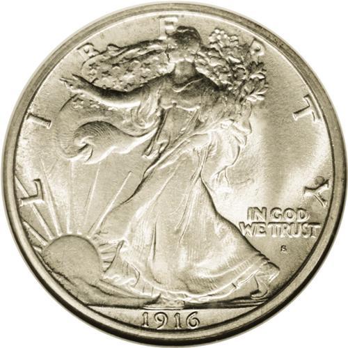 <B>1916-S<50C> MS65 NGC.</B></I> A glistening, essentially untoned Gem, enhanced with slightly granular, matte-like surfaces and a good strike, although not quite full. The scarcest of the three 1916s, this will make a handsome addition to any collection. Census: 49 in 65, 12 finer (7/06).