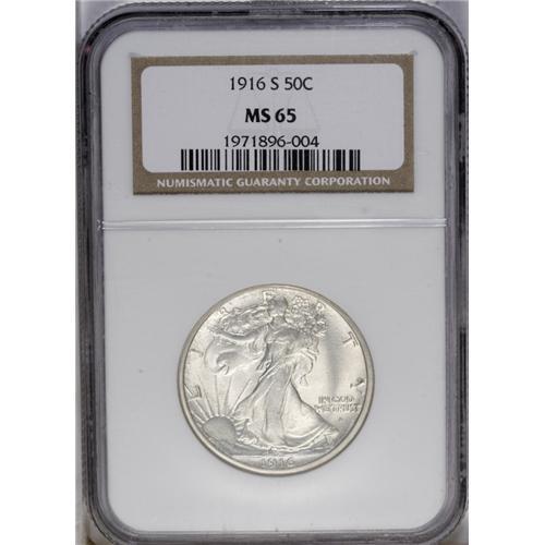 1916-S 50C MS65 NGC. A glistening, essentially untoned