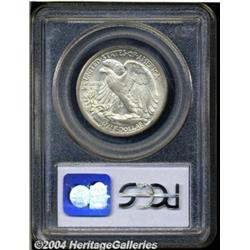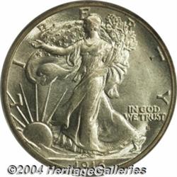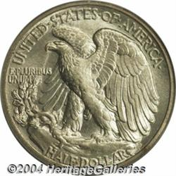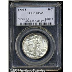<B>1916-S<50C> MS65 PCGS.</B></I> Fully lustrous with pale golden toning over each side. The matte-like, satiny surfaces are nearly void of post-striking impairments, just a couple of small marks are seen under close examination. The strike, while not 100% full, is exceptional for this scarce issue. The combination of first-year of issue and obverse mintmark make this date one of the most popular twentieth century coins. Population: 78 in 65, 13 finer (7/04). <BR><BR><B>Important notice:</B> Heritage usually auctions material at the rate of 200-250 lots per hour. On some occasions eBay Live bid software or the Internet may not be able to keep up with the pace of the auction. We recommend placing a realistic absentee bid now as insurance to avoid disappointment. Occasionally the auctioneer may eliminate or reject an eBay Live bid, and the auctioneer may also reopen a lot after the close of the eBay live bidding (usually because we missed an audience bid), and may reject your bid even if it shows you as the winning bidder. By bidding via eBay Live, you agree that Heritage may award the lot to another bidder at its sole discretion under the circumstances described above or any other reasonable circumstances. Since eBay bids are not shown to us until we open the lot on the floor, we treat those bids just like floor bids. In most cases the floor responds before the eBay bid is presented to us, due to Internet lag time, so for consistency we have made it a policy that floor bids are always considered first over tie eBay live bids. Also please note that all Heritage lots purchased through eBay Live carry a 20% Buyer's Premium. Please make sure you read the Terms and Conditions before you bid. </span></font></tr></table></td></tr></table>