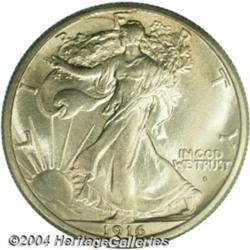 <table><tr><td><table><tr><td>1916-S 50C MS67 PCGS. This offering consists of a stunning Superb Gem, the single finest known to PCGS, and NGC has likewise only graded one piece at MS67. The strike is bold, with Liberty's thumb, head, and skirt lines plainly visible. Just a hint of golden-brown color resides near the upper obverse periphery, close to the E and T in LIBERTY. The fields, devices, and rims are virtually free of contact marks, in fact, a glass can only locate a trio of tiny contact marks on Liberty's left (facing) leg, and a similar quantity of barely detectable blemishes on the reverse, just to the right of the eagle's breast. In sum, this is an exquisitely preserved, natural appearing, abundantly appealing example of this sought-after date and mint. This one is for a connoisseur's cabinet. Population: 1 in 67, 0 finer (3/04).From the Nicholas Collection. <BR><BR><B>Important notice:</B> Heritage usually auctions material at the rate of 200-250 lots per hour. On some occasions eBay Live bid software or the Internet may not be able to keep up with the pace of the auction. We recommend placing a realistic absentee bid now as insurance to avoid disappointment. Occasionally the auctioneer may eliminate or reject an eBay Live bid, and the auctioneer may also reopen a lot after the close of the eBay live bidding (usually because we missed an audience bid), and may reject your bid even if it shows you as the winning bidder. By bidding via eBay Live, you agree that Heritage may award the lot to another bidder at its sole discretion under the circumstances described above or any other reasonable circumstances. Since eBay bids are not shown to us until we open the lot on the floor, we treat those bids just like floor bids. In most cases the floor responds before the eBay bid is presented to us, due to Internet lag time, so for consistency we have made it a policy that floor bids are always considered first over tie eBay live bids. Also please note that all Heritage lots purchased through eBay Live carry a 20% Buyer's Premium. Please make sure you read the Terms and Conditions before you bid. <BR><BR><B>IMPORTANT ANNOUNCEMENT ABOUT RESERVES:</B> Heritage now divulges all reserves on its web site 7 days before every auction. If you want to know whether the reserve on this lot has been met, and if not, what the reserve amount is, please visit this lot page on the HeritageCoin.com web site, or email: bid@HeritageGalleries.com </span></font></td></tr></table></td></tr></table>