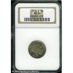1916-S 5C MS64 NGC. Apricot, steel-blue, and gunme <B>1916-S 5C MS64 NGC.</B></I> Apricot, steel-blue, and gunmetal-gray colors embrace this lovely near-Gem. The borders are needle-sharp, while the centers have only slight softness. An interesting slender vertical strike-thru (as made) is on the hair braid. <BR><BR><B>Important notice:</B> Heritage usually auctions material at the rate of 200-250 lots per hour. On some occasions eBay Live bid software or the Internet may not be able to keep up with the pace of the auction. We recommend placing a realistic absentee bid now as insurance to avoid disappointment. Occasionally the auctioneer may eliminate or reject an eBay Live bid, and the auctioneer may also reopen a lot after the close of the eBay live bidding (usually because we missed an audience bid), and may reject your bid even if it shows you as the winning bidder. By bidding via eBay Live, you agree that Heritage may award the lot to another bidder at its sole discretion under the circumstances described above or any other reasonable circumstances. Since eBay bids are not shown to us until we open the lot on the floor, we treat those bids just like floor bids. In most cases the floor responds before the eBay bid is presented to us, due to Internet lag time, so for consistency we have made it a policy that floor bids are always considered first over tie eBay live bids. Also please note that all Heritage lots purchased through eBay Live carry a 20% Buyer's Premium. Please make sure you read the Terms and Conditions before you bid. This lot is being auctioned in conjunction with a live floor auction by Heritage Galleries & Auctioneers. All final auction and invoice information will be supplied by Heritage Galleries & Auctioneers, and all other information should be considered preliminary. Lot:5572