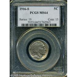 <B>1916-S 5C MS64 PCGS.</B></I> While the '16-S is not a scarce issue in all grades, it is certainly challenging in MS64 and finer conditions. This piece is really quite interesting in that it is colorfully toned throughout and the fields have a strong satiny finish. Rose, gold, and blue hues moderately decorate each side. Sharply struck for this often weak issue. Lot:5966