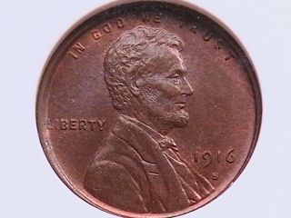 1916-S BU Lincoln Cent MS-65 NGC. A beautiful razor sharp coin that shows about 5-10% red luster on obverse and beautiful golden brown luster on reverse! Very bold strike with no spots! MS-65 Red book value is $8,000!