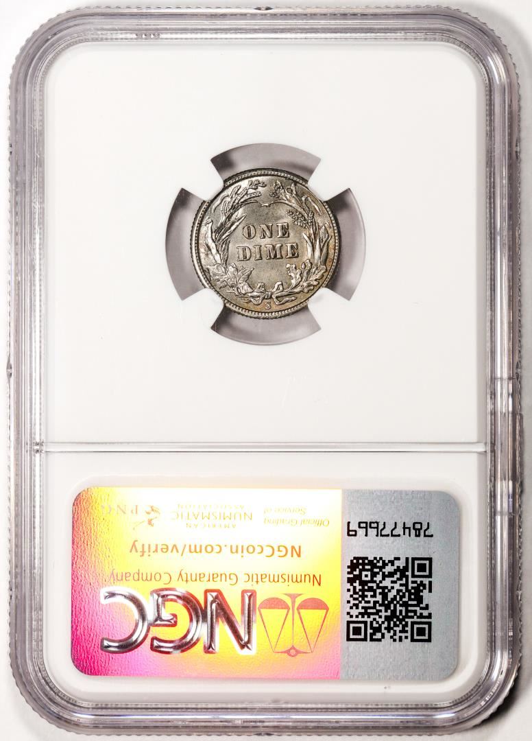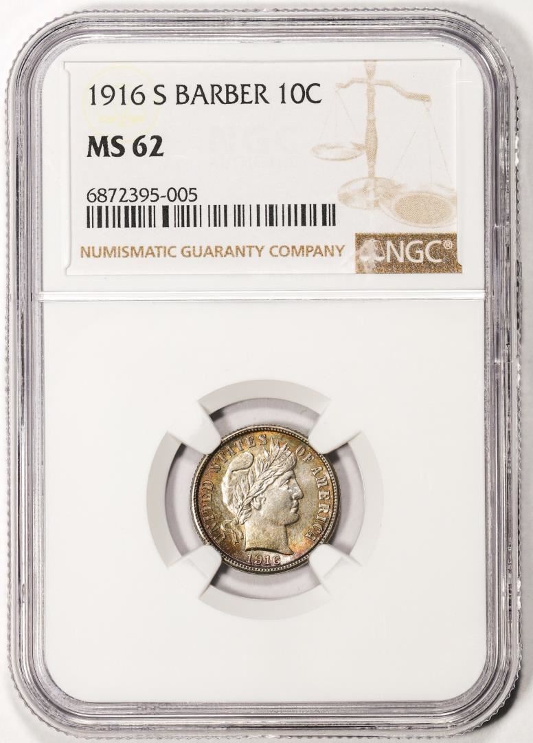 One 1916-S Barber Dime Coin NGC MS62 Amazing Toning. NGC Certified.
