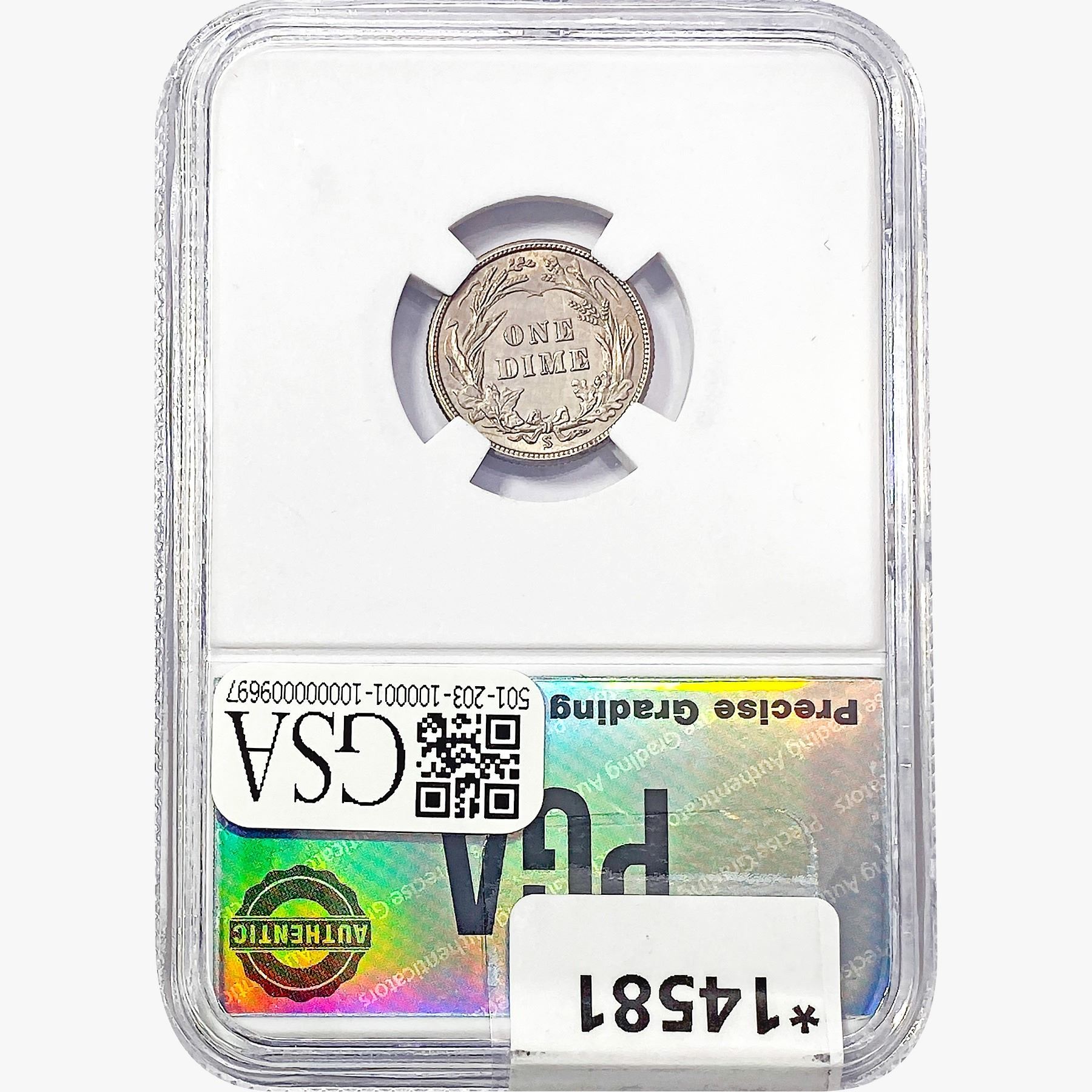 COINS AND CURRENCY LISTED IN GSA’S CATALOG AS GRADED AND ENCAPSULATED BY PCGS, NGC, ANACS, ICG, PCGS CURRENCY, PMG, PCGS BANKNOTE GRADING, CMC OR ANY OTHER THIRD-PARTY GRADING SERVICE ARE LIKEWISE SOLD “AS-IS” EXCEPT AS EXPRESSLY SET FORTH HEREIN. ALL THIRD-PARTY GRADING SERVICE GUARANTEES, INCLUDING AUTHENTICITY, ARE THE SOLE RESPONSIBILITY OF THE THIRD-PARTY GRADING SERVICE AND NOT WARRANTIES OR GUARANTEES OF GSA. BIDDERS SHOULD CONTACT THESE THIRD-PARTY GRADING SERVICES DIRECTLY WITH RESPECT TO ANY CLAIMS OR QUESTIONS THEY MAY HAVE CONCERNING THEIR GUARANTEES AND WARRANTIES. BIDDERS ACKNOWLEDGE AND AGREE THAT AUCTIONEER IS NOT BOUND BY OR LIABLE FOR ANY OPINION OR CERTIFICATION BY ANY THIRD-PARTY GRADING SERVICE. REMOVAL OF A PRODUCT FROM ITS PROTECTIVE CASING OR HOLDER OR ALTERATION OF ANY COIN HOLDER WAIVES ALL RIGHTS CONCERNING THE PRODUCT CONTAINED THEREIN.
