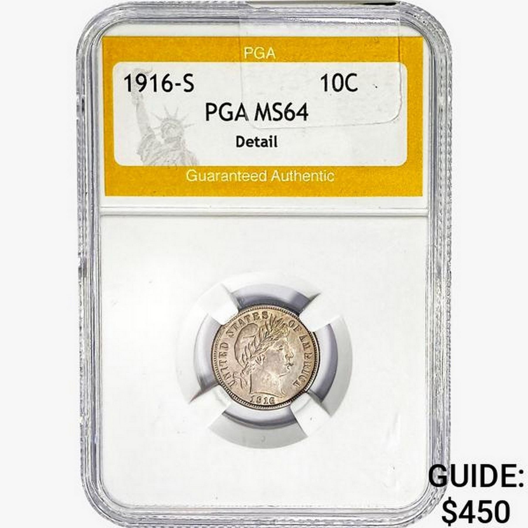 1916-S Barber Dime PGA MS64 Detail