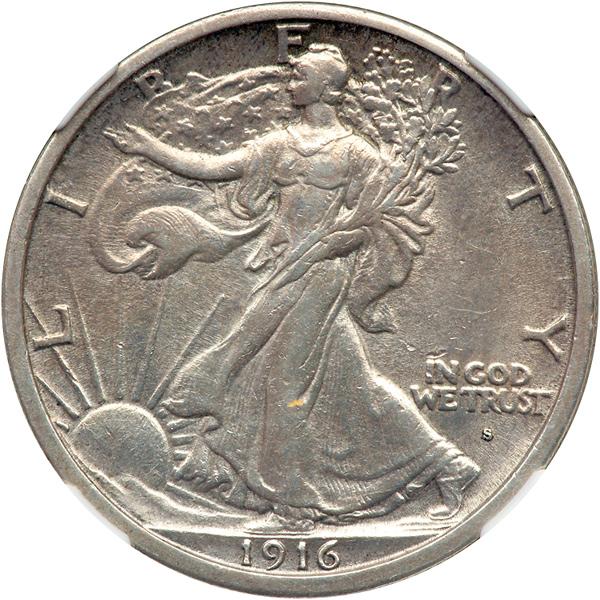 1916-S Liberty Walking Half Dollar. Improperly Cleaned. Desirable first year date.