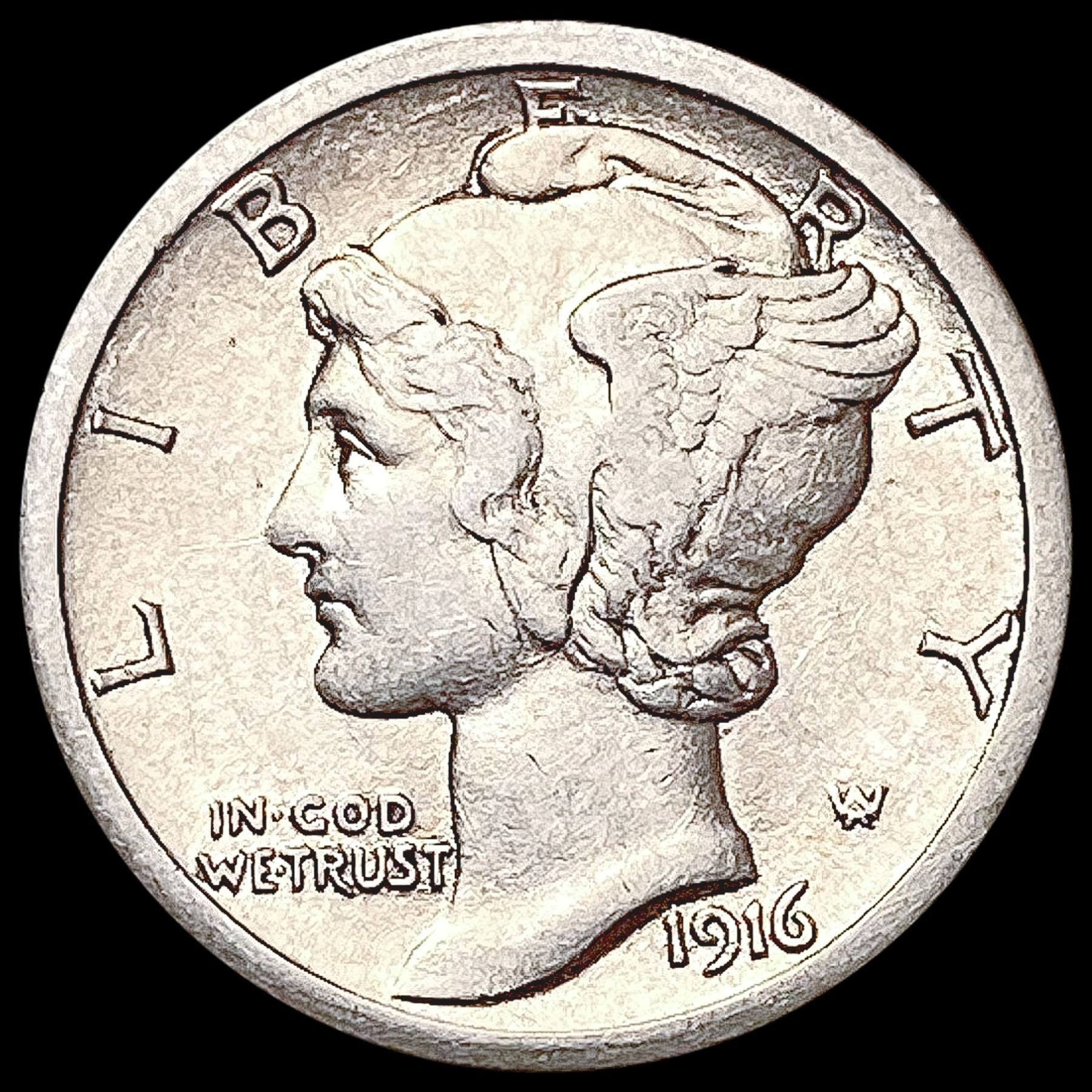 1916-S Mercury Dime CLOSELY UNCIRCULATED