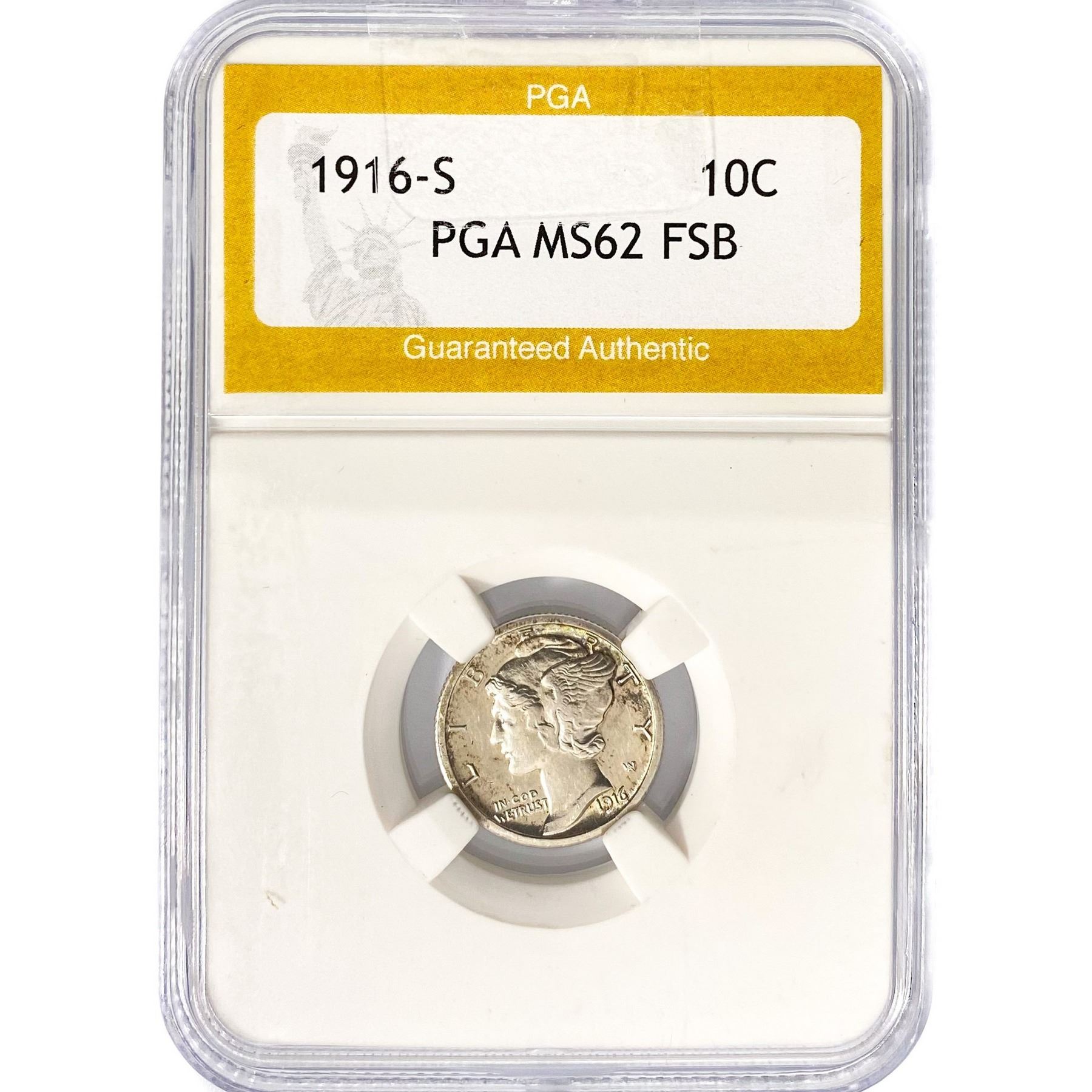1916-S Mercury Silver Dime PGA MS62 FSB