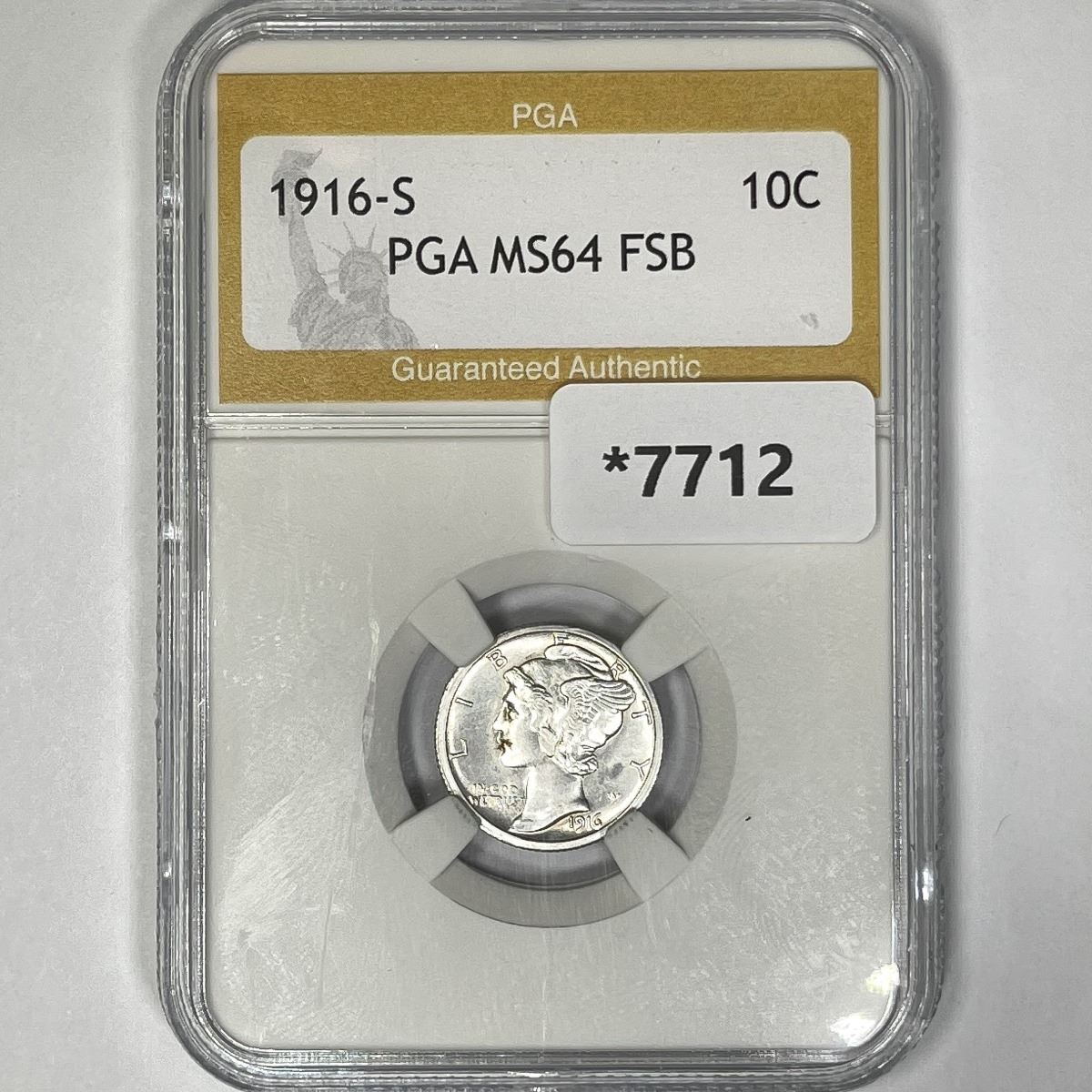 1916-S Mercury Silver Dime PGA-MS64 FSB