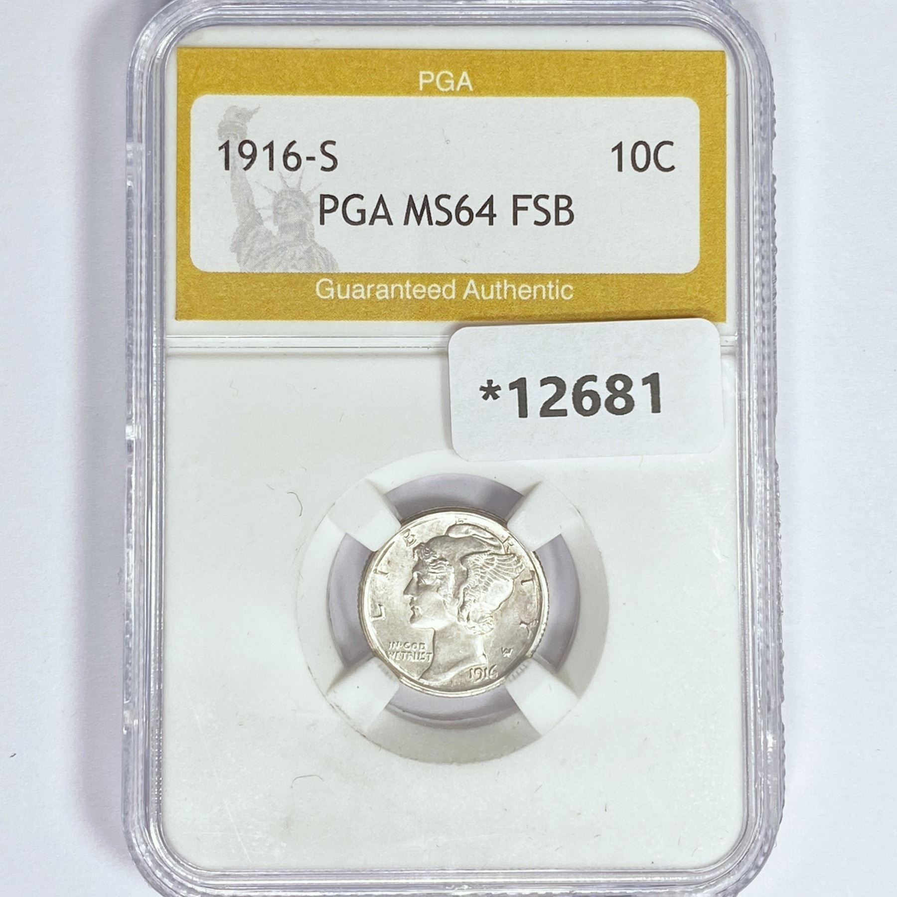 1916-S Mercury Silver Dime PGA MS64 FSB