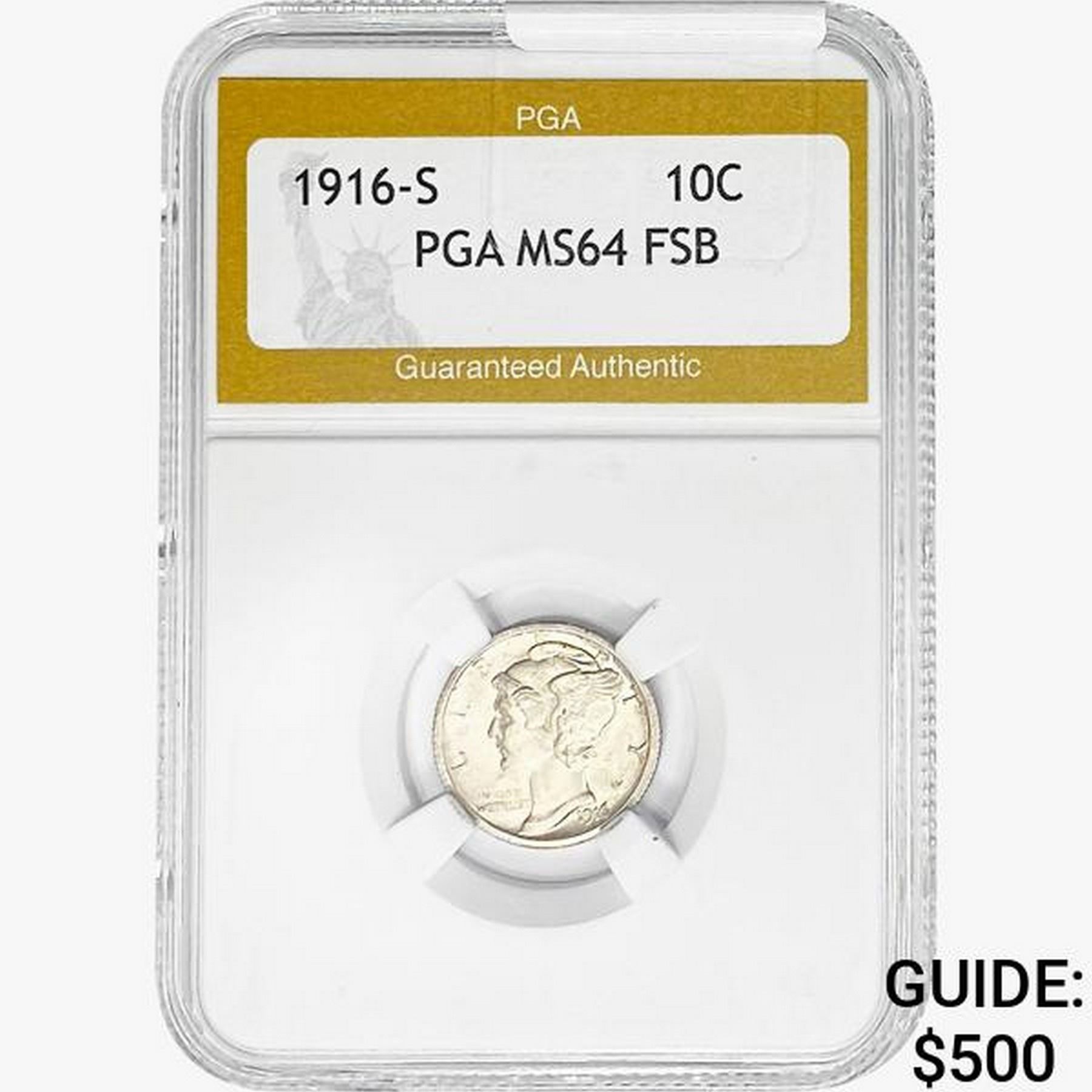 1916-S Mercury Silver Dime PGA MS64 FSB