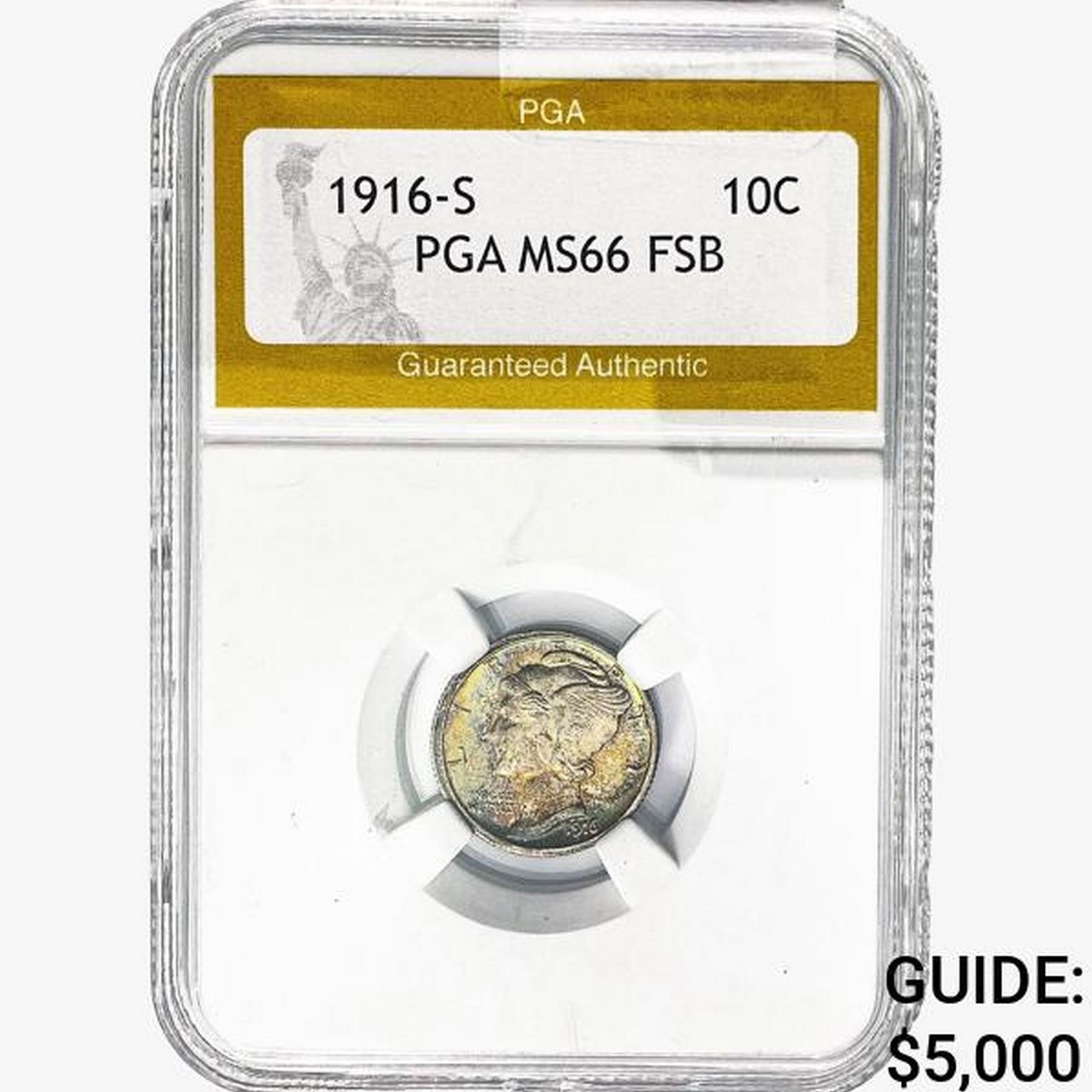 1916-S Mercury Silver Dime PGA MS66 FSB