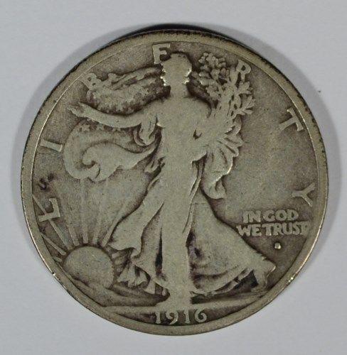 1916-S WALKING LIBERTY HALF DOLLAR, VG/FINE KEY COIN