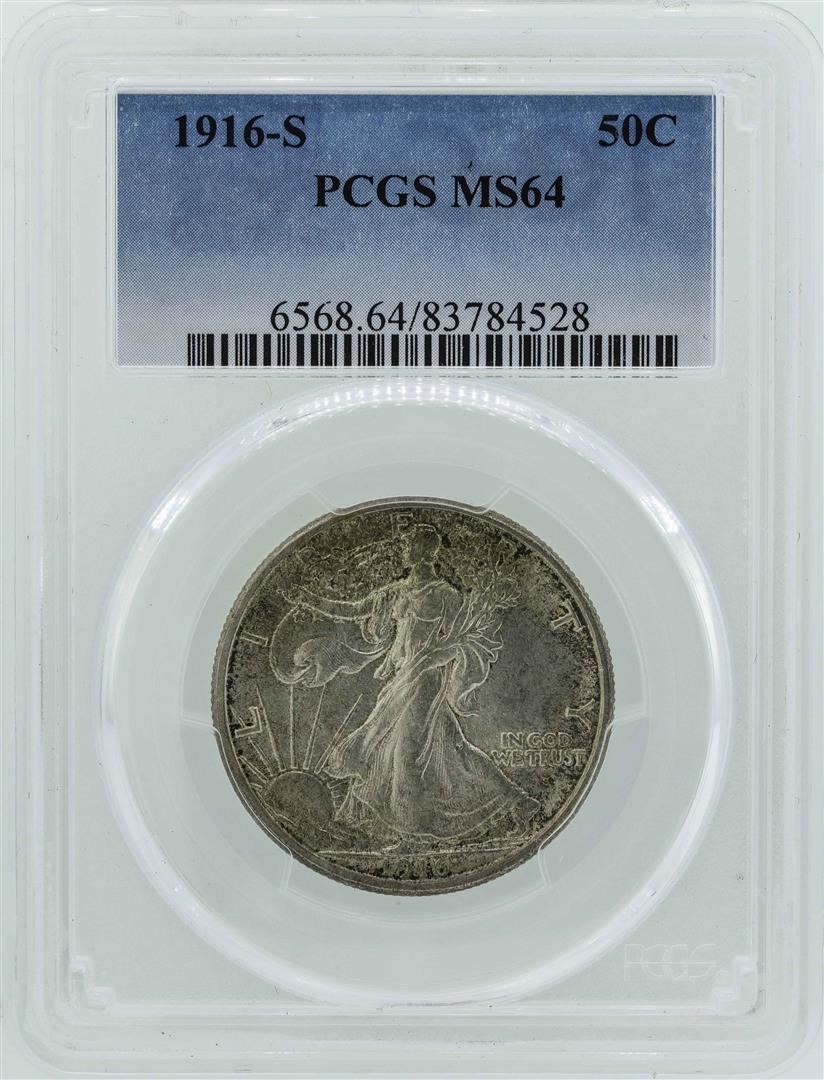 One 1916-S Walking Liberty Half Dollar Coin PCGS MS64. PCGS Graded.