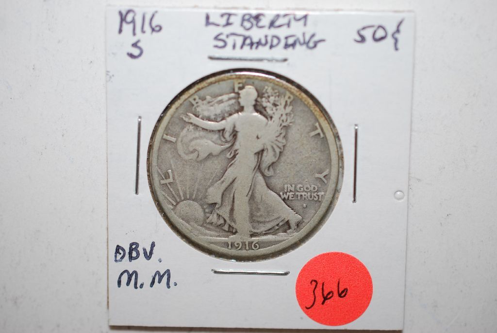 1916-S Walking Liberty Half Dollar; Mint Mark Obv.; EST. $100-150