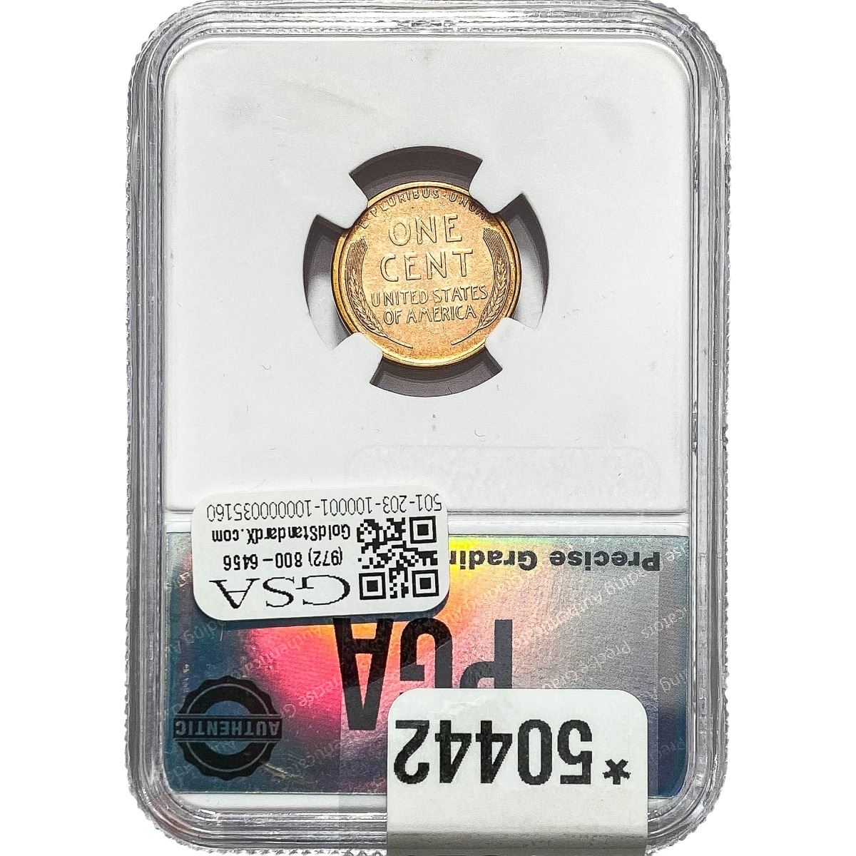 e. Coins sold referencing a third-party grading service are sold “AS IS” without any express or implied warranty, except for a guarantee by GSA that they are genuine. Removal or alteration of the holder, voids all of Bidder’s claims concerning that Product. Certain warranties may be available from the grading services and Bidders are referred to them for further details: Numismatic Guaranty Corporation (NGC), PO Box 4776, Sarasota, FL 34230, www.ngccoin.com/services/writtenguarantee.asp; Professional Coin Grading Services (PCGS), PO Box 9458, Newport Beach, CA 92658, www.pcgs.com/guarantee.html; ANACS, 6555 S. Kenton St., Ste. 303, Englewood, CO 80111; and Independent Coin Grading Co. (ICG), 7901 East Bellview, Ave., Suite 50, Englewood, CO 80111.