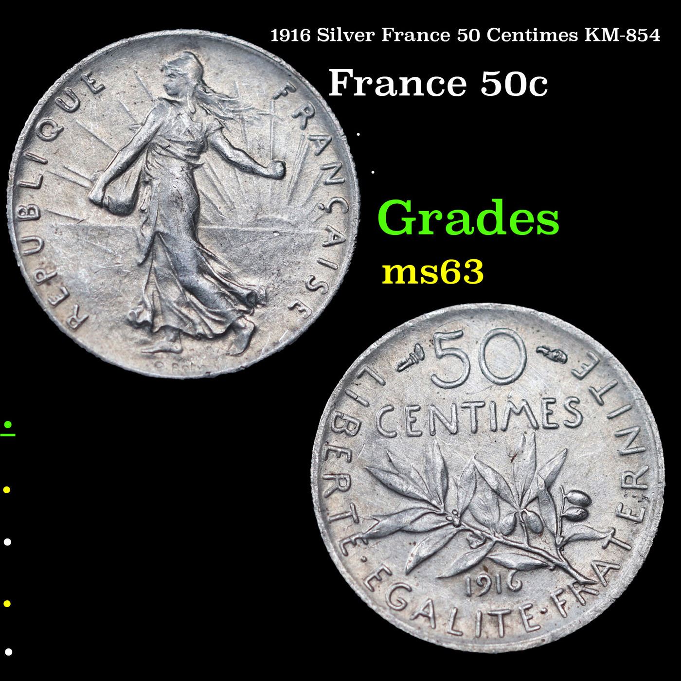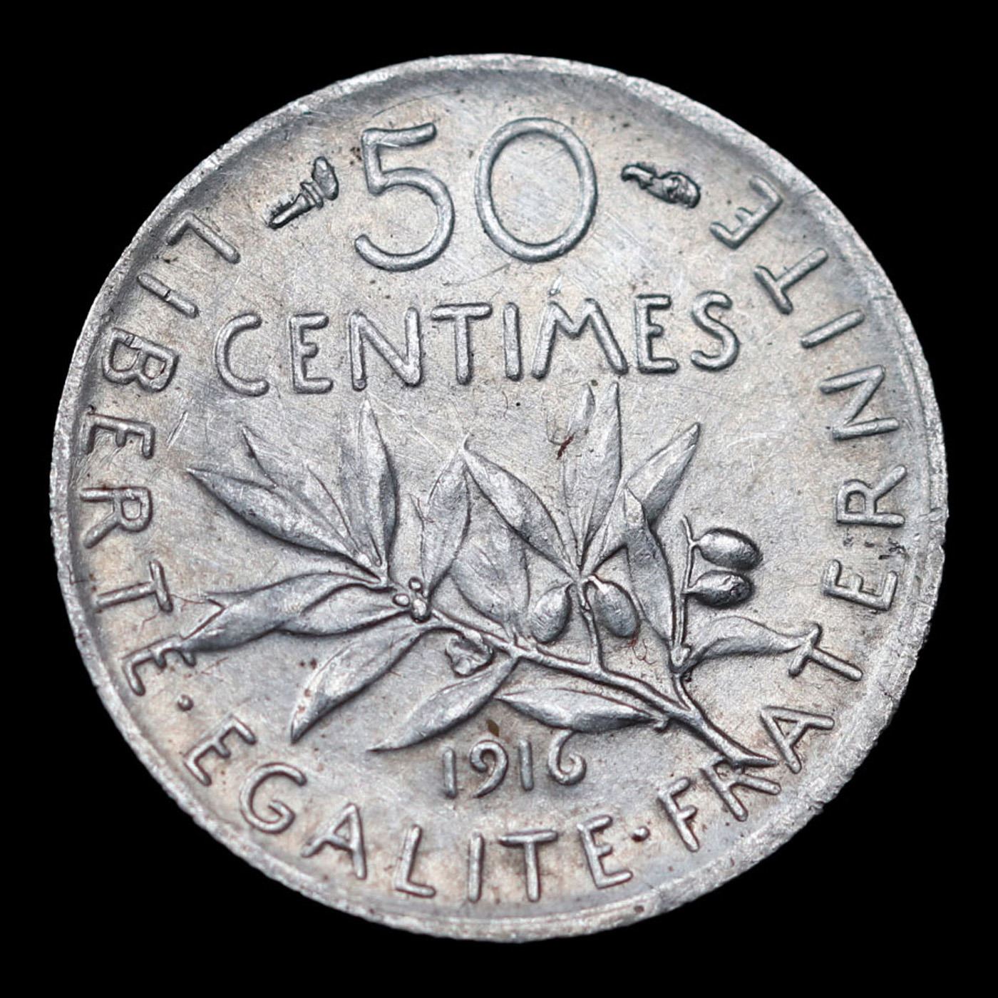1916 Silver France 50 Centimes KM-854 Grades Select Unc.