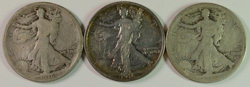 1916 VG+ , 1916-D GOOD+ & 1916-S GOOD WALKING LIBERTY HALF DOLLARS