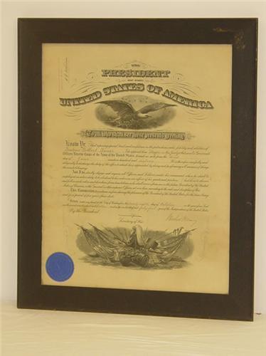 1916 WOODROW WILSON PRESIDENTIAL APPOINTMENT-FREDERIC GILBERT BAUER, RANK OF MAJOR IN THE JUDGE ADVOCATE GENERALS OFFICERS RESERVE CORPS.-DATED OCT. 28, 1916 W/ WAR OFFICE SEAL & SIGNATURE, FRAMED (19.5" X 15.5") -TONING, STAINS, IMPERFECTIONS
