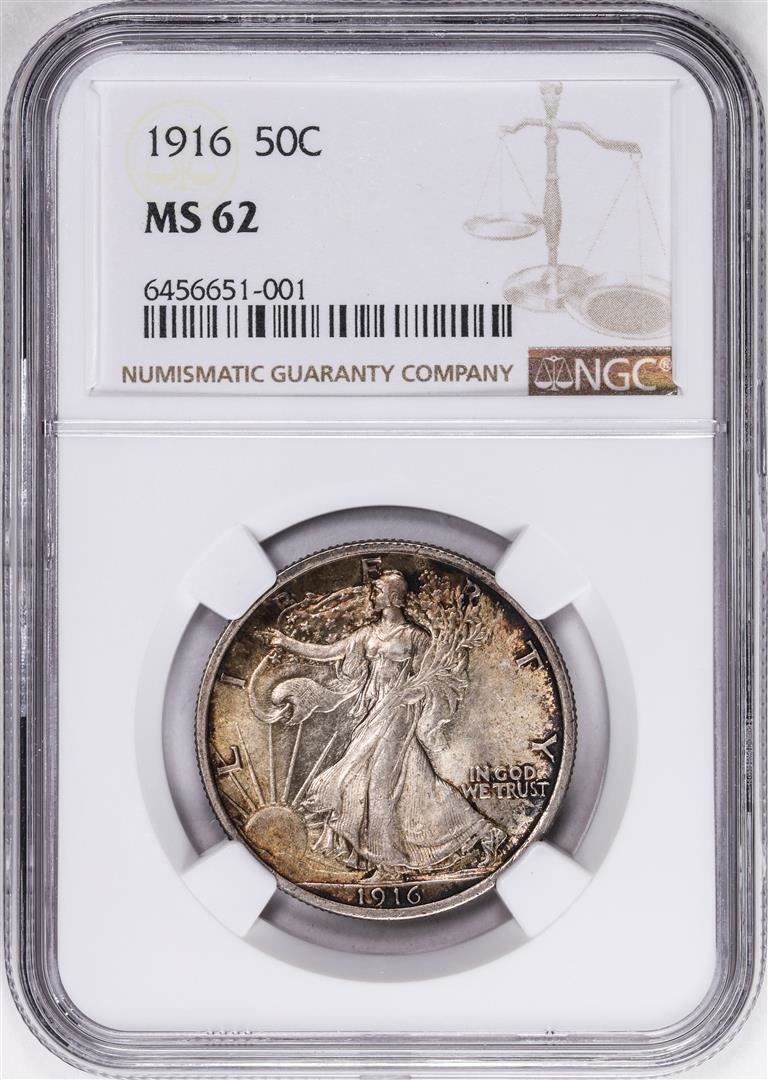 One 1916 Walking Liberty Half Dollar Coin NGC MS62. NGC Certified.