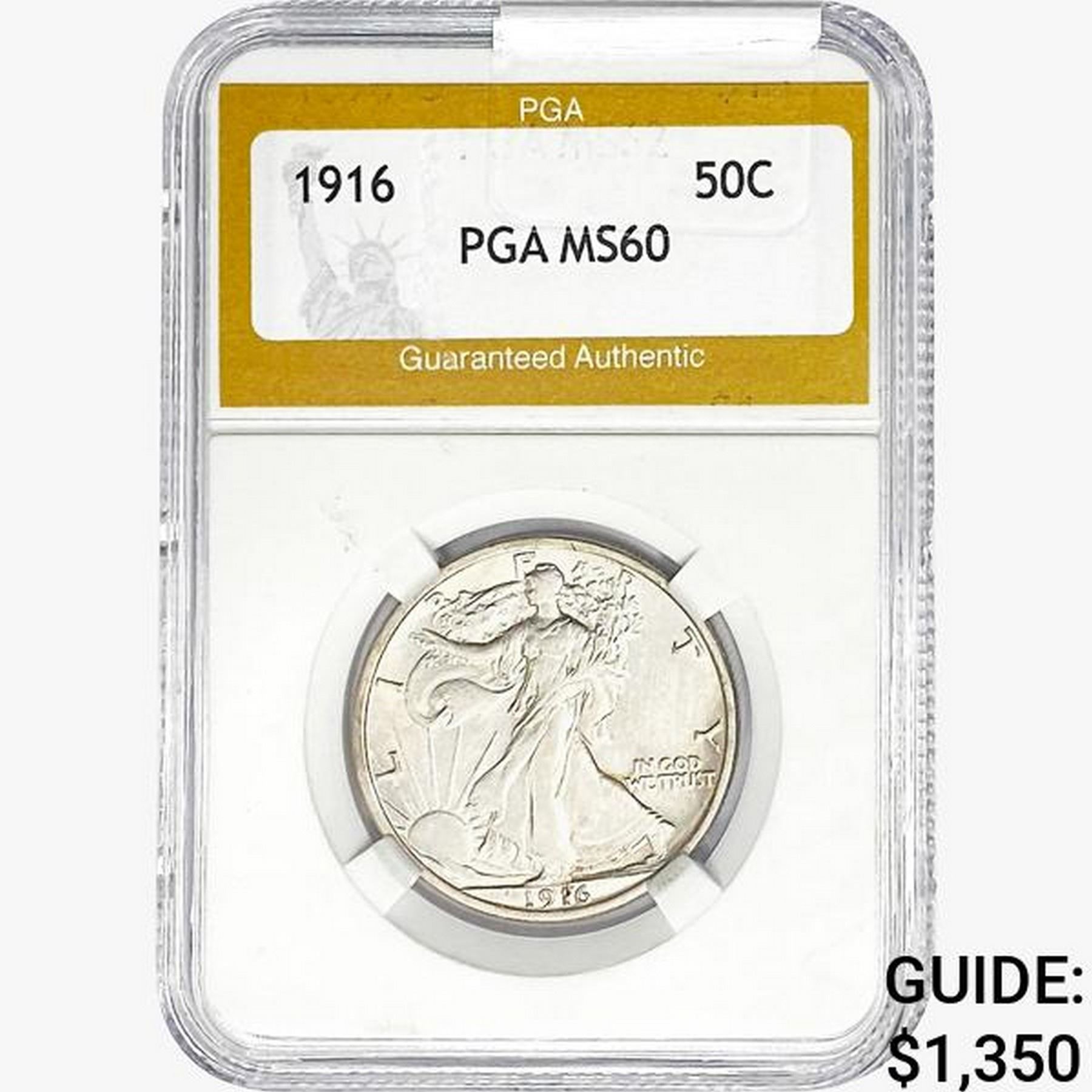 1916 Walking Liberty Half Dollar PGA MS60