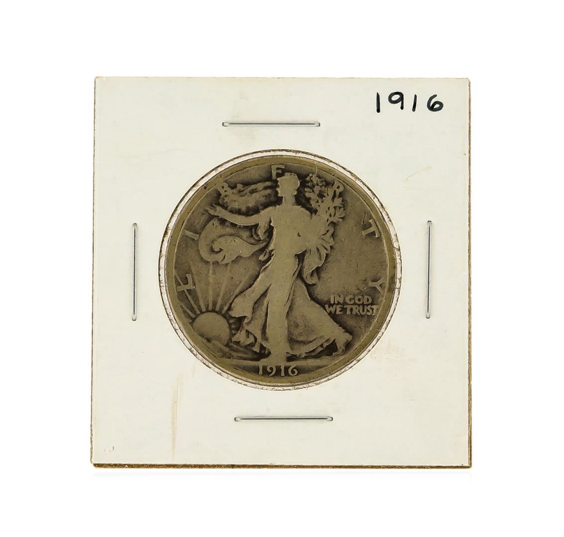 One 1916 Walking Liberty Half Dollar.