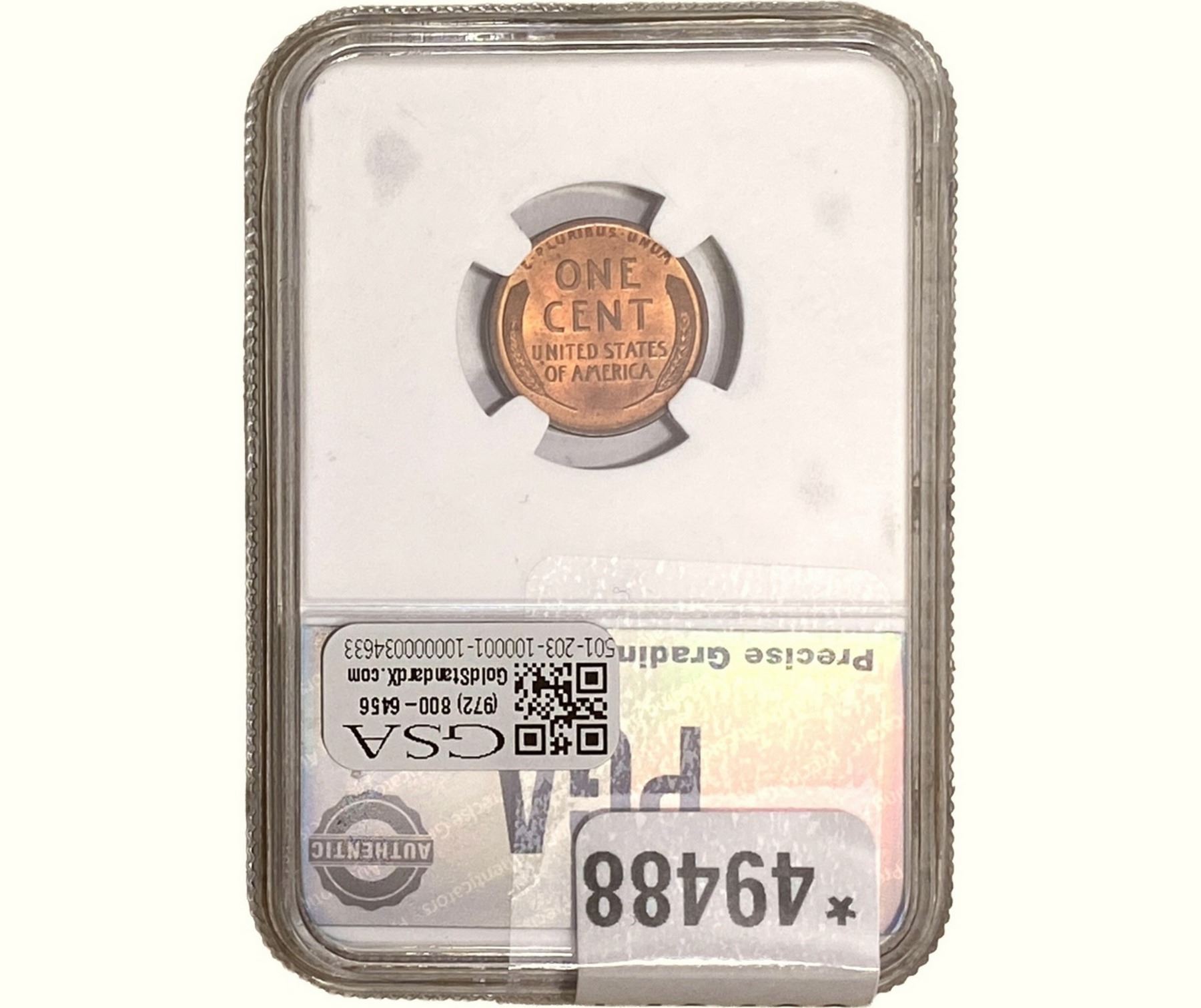 l. All non-certified coins and currency are guaranteed genuine, but are not guaranteed as to grade, since grading is a matter of opinion, an art and not a science, and therefore the description rendered by GSA or any third-party grading service may not agree with the opinion of others (including trained experts), and the same expert may not grade the same item with the same grade at two different times. GSA may, but is not obligated to, express an opinion as to non-certified numismatic items, in GSA’s opinion, or by its employees’ experience and the current interpretation of the American Numismatic Association’s standards as of the date the catalog was prepared. There is no guarantee or warranty expressed or implied that the grading opinions utilized by GSA, if any, will meet the standards of any grading service at any time in the future.