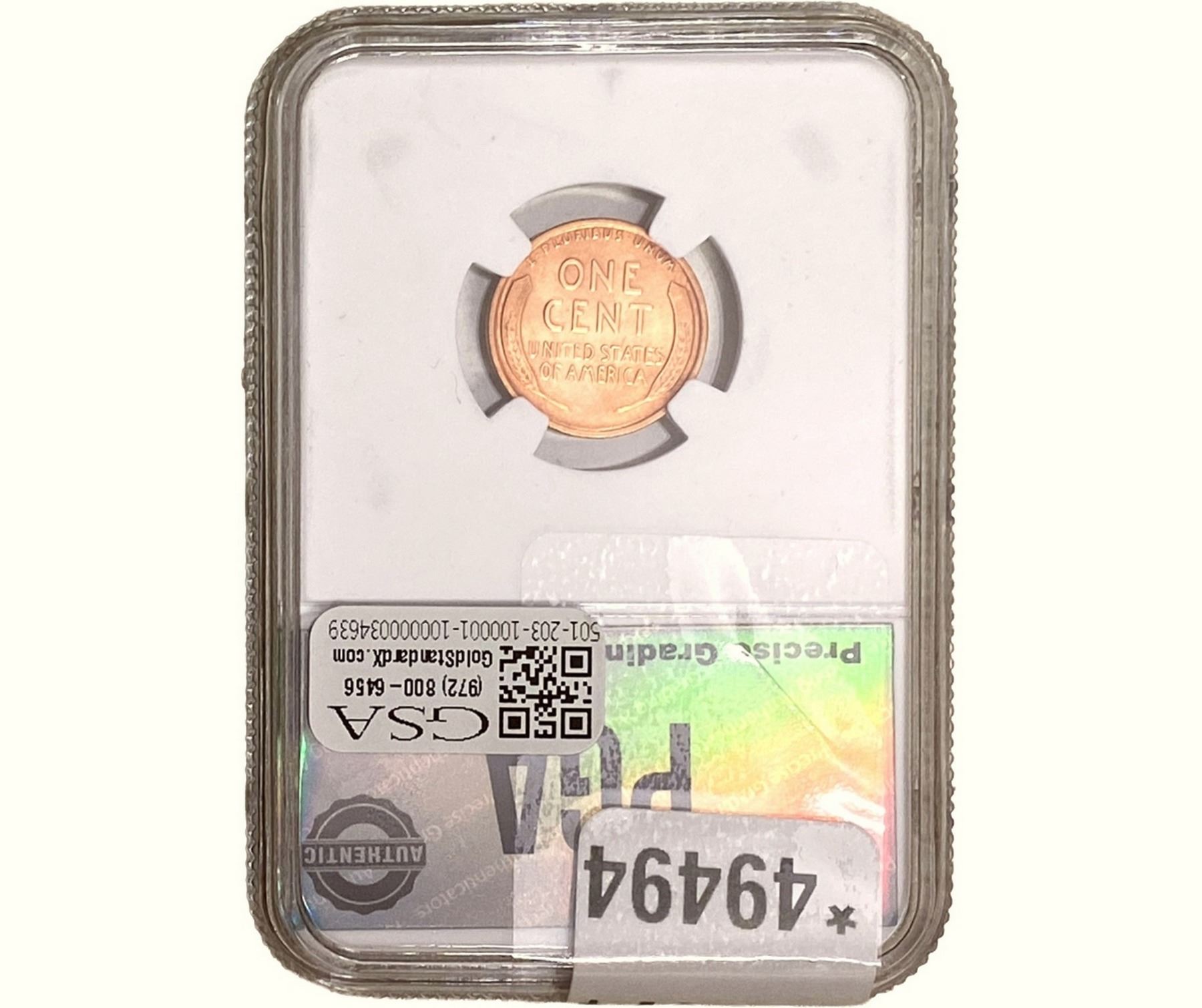 l. All non-certified coins and currency are guaranteed genuine, but are not guaranteed as to grade, since grading is a matter of opinion, an art and not a science, and therefore the description rendered by GSA or any third-party grading service may not agree with the opinion of others (including trained experts), and the same expert may not grade the same item with the same grade at two different times. GSA may, but is not obligated to, express an opinion as to non-certified numismatic items, in GSA’s opinion, or by its employees’ experience and the current interpretation of the American Numismatic Association’s standards as of the date the catalog was prepared. There is no guarantee or warranty expressed or implied that the grading opinions utilized by GSA, if any, will meet the standards of any grading service at any time in the future.
