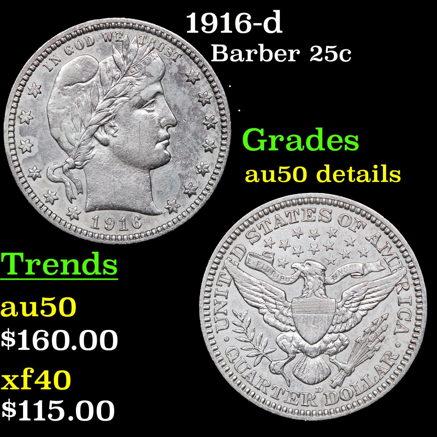 1916-d Barber Quarter 25c Grades AU Details. Final year of issue of the Barber series.