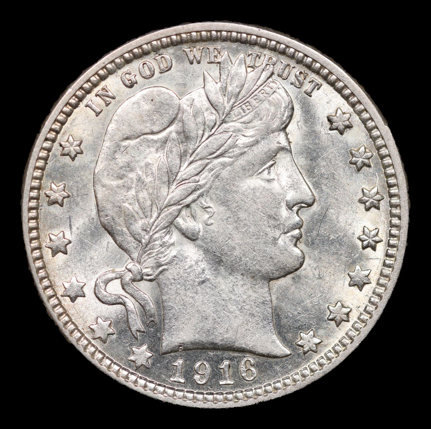 1916-d Barber Quarter 25c Grades Select+ Unc. Final year of issue of the Barber series.