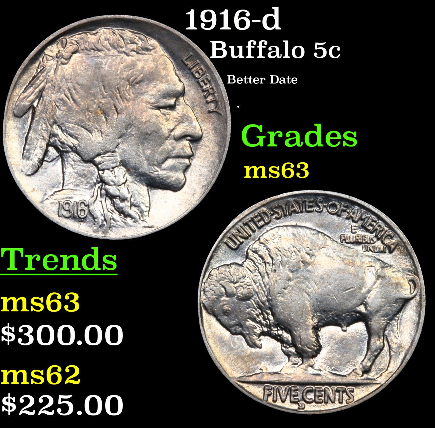 1916-d Buffalo Nickel 5c Grades Select Unc.
