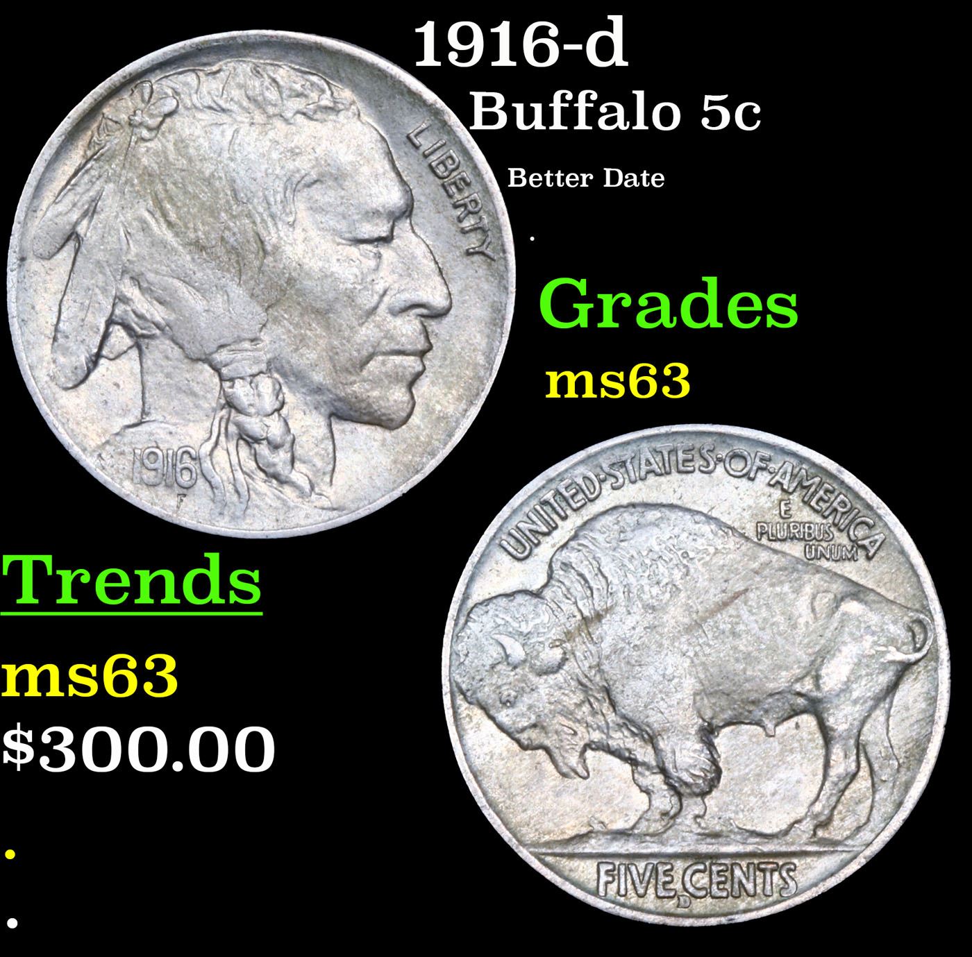1916-d Buffalo Nickel 5c Grades Select Unc.