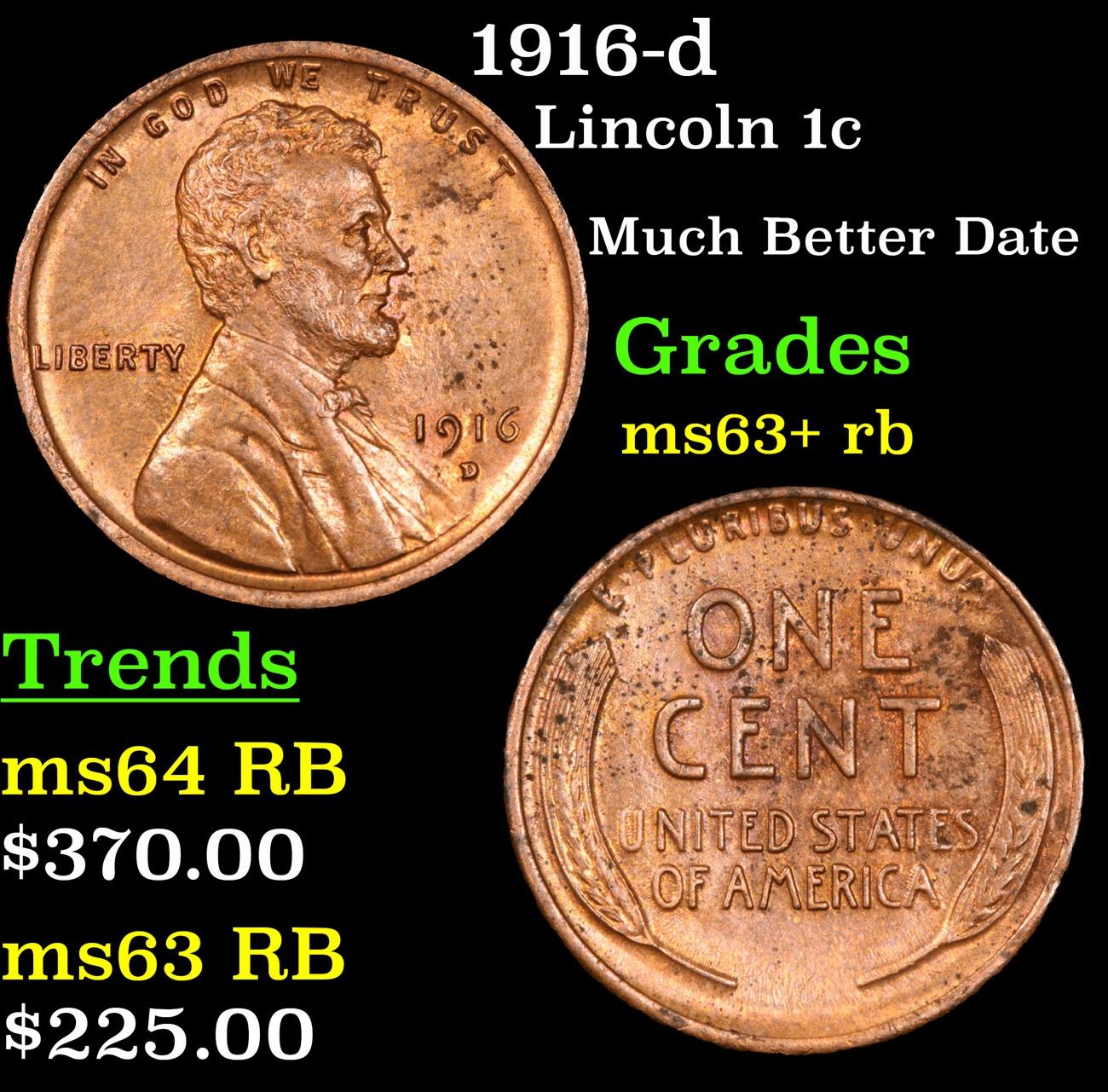 1916-d Much Better Date . Lincoln Cent 1c Grades Select+ Unc RB.