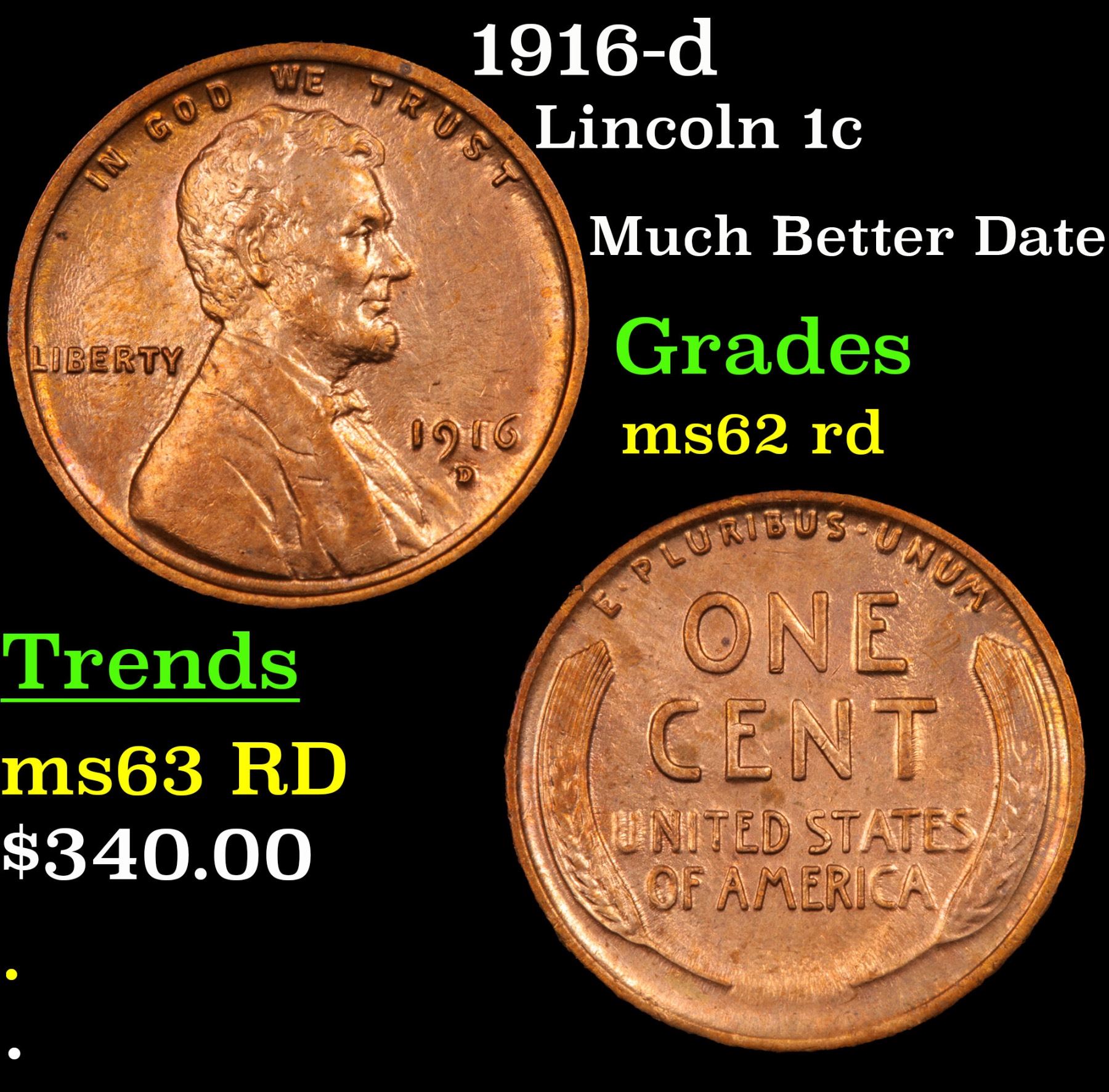 1916-d Lincoln Cent 1c Grades Select Unc RD.
