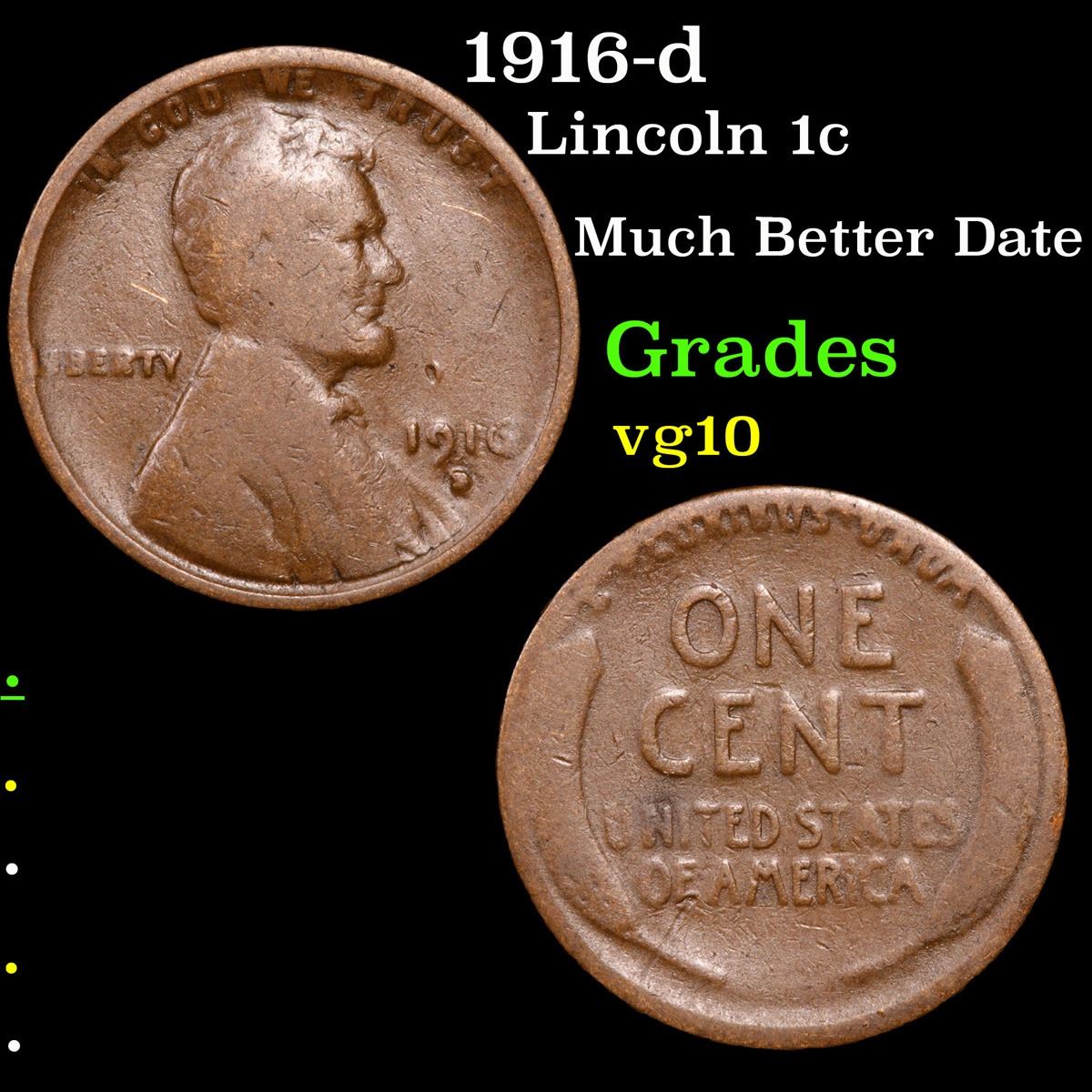 1916-d Much Better Date . Lincoln Cent 1c Grades vg+. Out of an original mintage of nearly 36 million, PCGS estimates only 175 survive in ms65 or better.